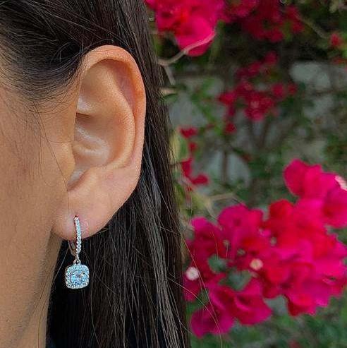 זוג עגילי חישוק לאישה מכסף אמיתי בשילוב אבני זירקון ואבן חן