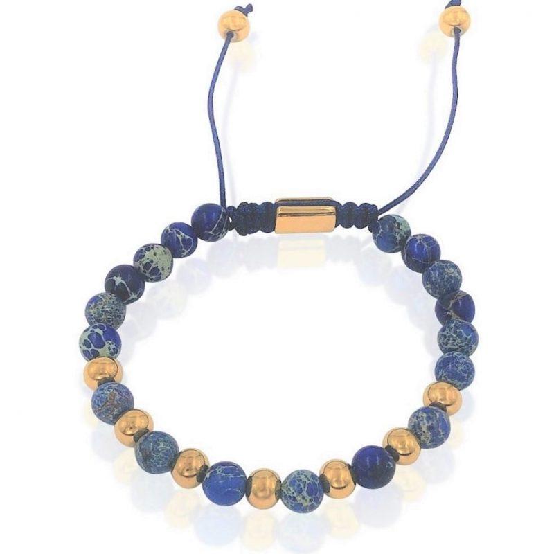 צמיד לגבר – עשוי מאבני חן כחולות עם שילוב חרוזי זהב מפלדת אל חלד