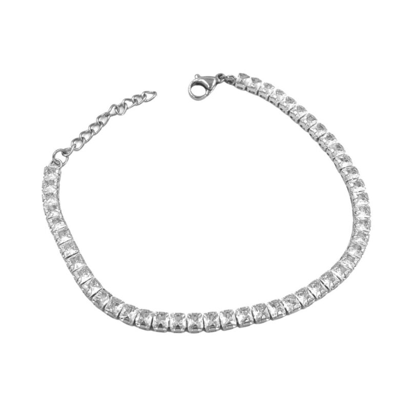 צמיד טניס לגבר – כסף שיבוץ שקוף