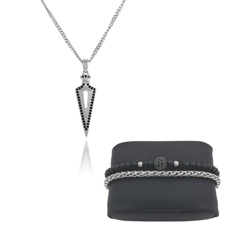 סט צמידים אבני חן וצמה + שרשרת חץ משובצת לגבר