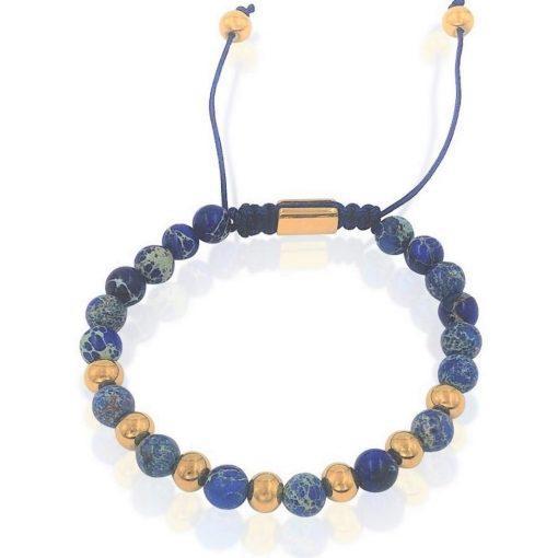 צמיד לגבר – עשוי מאבני חן כחולות עם שילוב חרוזי זהב מפלדת אל חלד