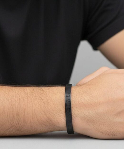 צמיד קשיח בצבע שחור בשילוב אלמנטים של אותיות רומיות