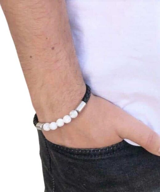 צמיד לגבר – עור וחרוזים שחור-לבן