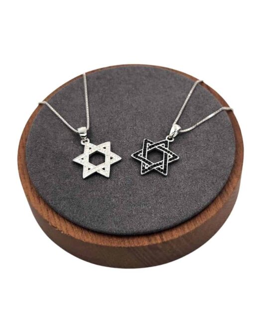 שרשרת מגן דוד לגבר – עשויה מכסף אמיתי משולבת עם אבני זירקון שחורות