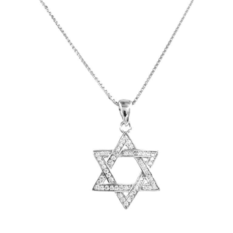 שרשרת מגן דוד לגבר – עשויה מכסף אמיתי משולבת עם אבני זירקון שקופות
