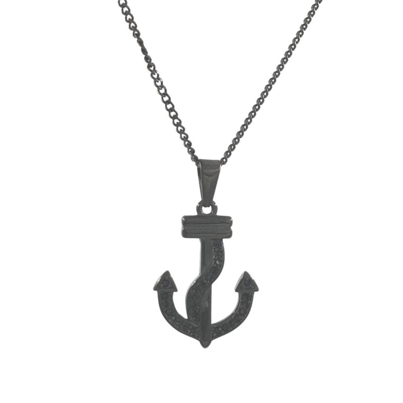 שרשרת עוגן שחורה לגבר בשיבוץ אבני זירקון שחורות